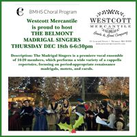 Join us on Thursday, December 18th from 6ā6:30pm for a festive performance by The Belmont Madrigal Singers. This talented a cappella ensemble brings Renaissance-inspired madrigals, motets, and holiday carols to life with their signature costumed charm.