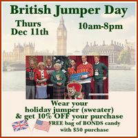 Join us on Thursday, December 11th from 10amā8pm for a cozy, cheerful celebration inspired by one of the UKās most charming holiday traditionsāBritish Jumper Day!