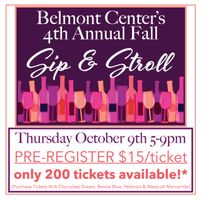 🍷✨ Stroll, sip & shop local! Join us for Belmont Center’s 4th Annual Fall Sip & Stroll on Thursday, October 9th, 5–9PM.